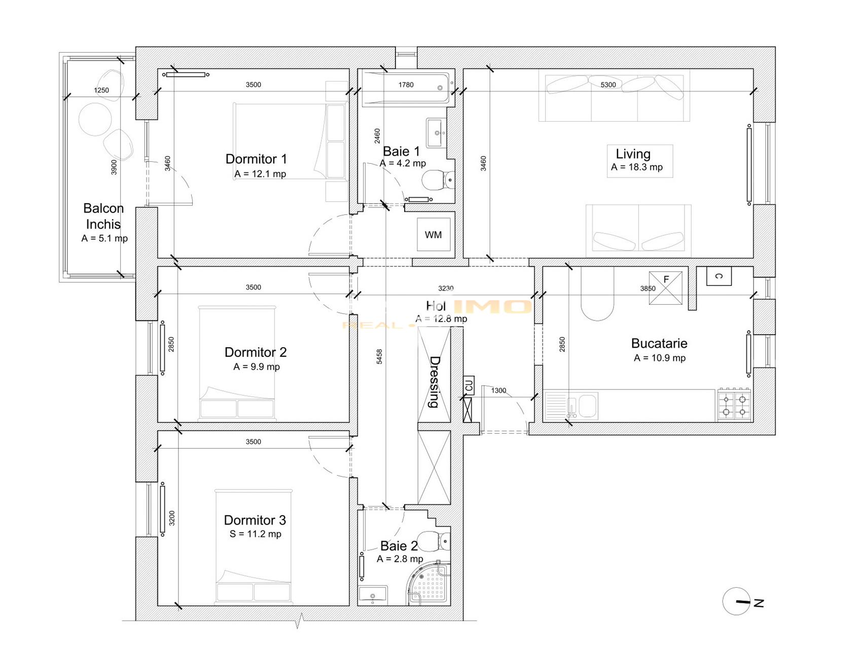 Apartamentul are o suprafață utilă: 84 mp, Orientare Est-Vest pentru cele 3 dormitoare (luminoase și aerisite), Orientare Vest pentru living și Orientare Nord pentru bucătărie, Balcon inchis, Centrala termică pe gaz, cu calorifere din fontă, Geamuri termopan bicameral, Parchet lamelar în toate camerele, gresie și faianță în băi, Uși interioare din stejar masiv.