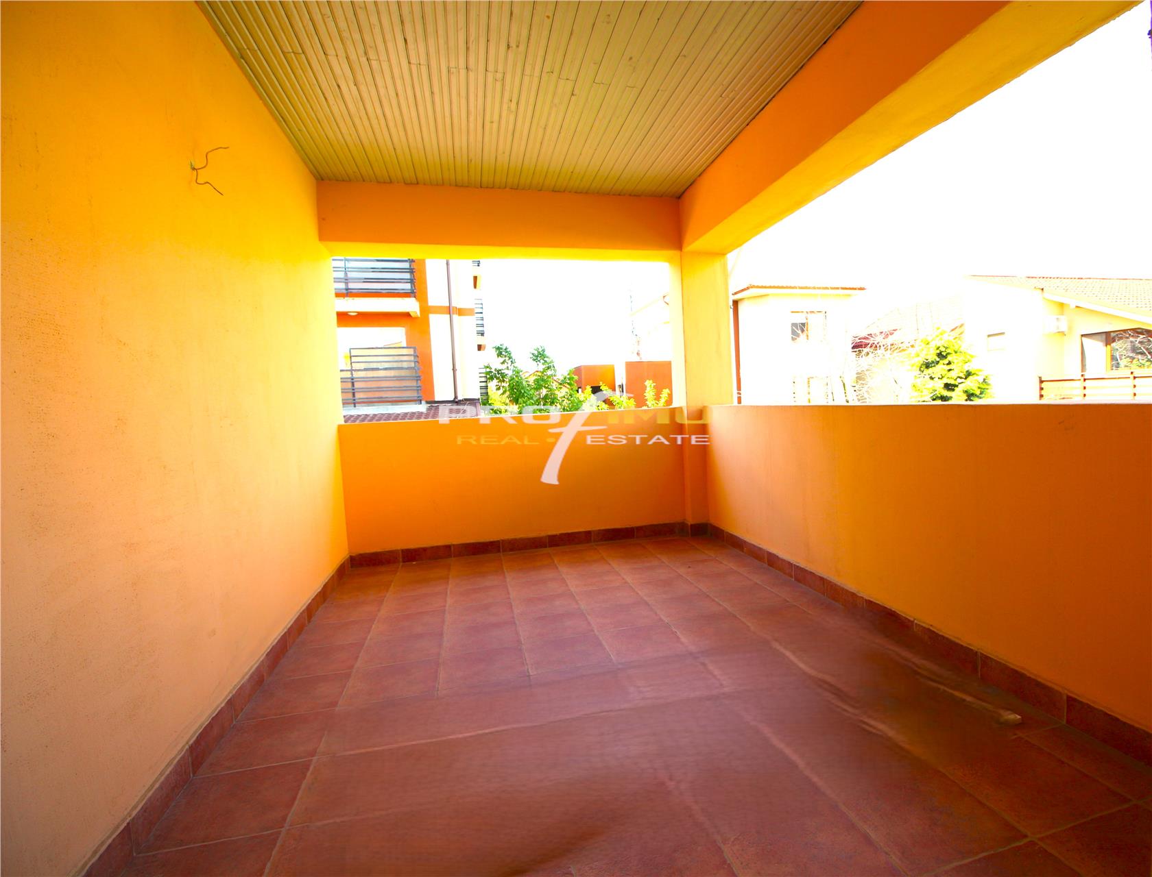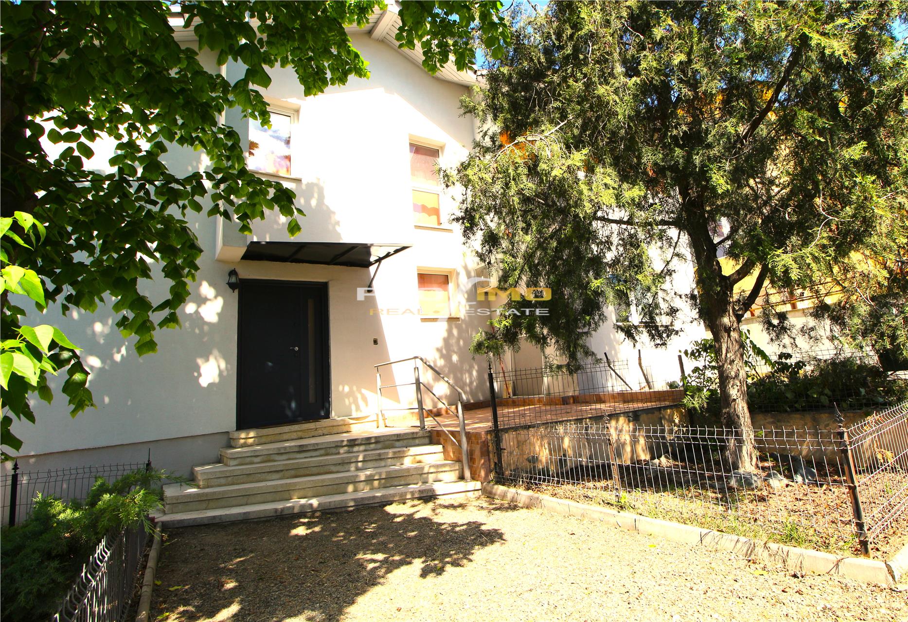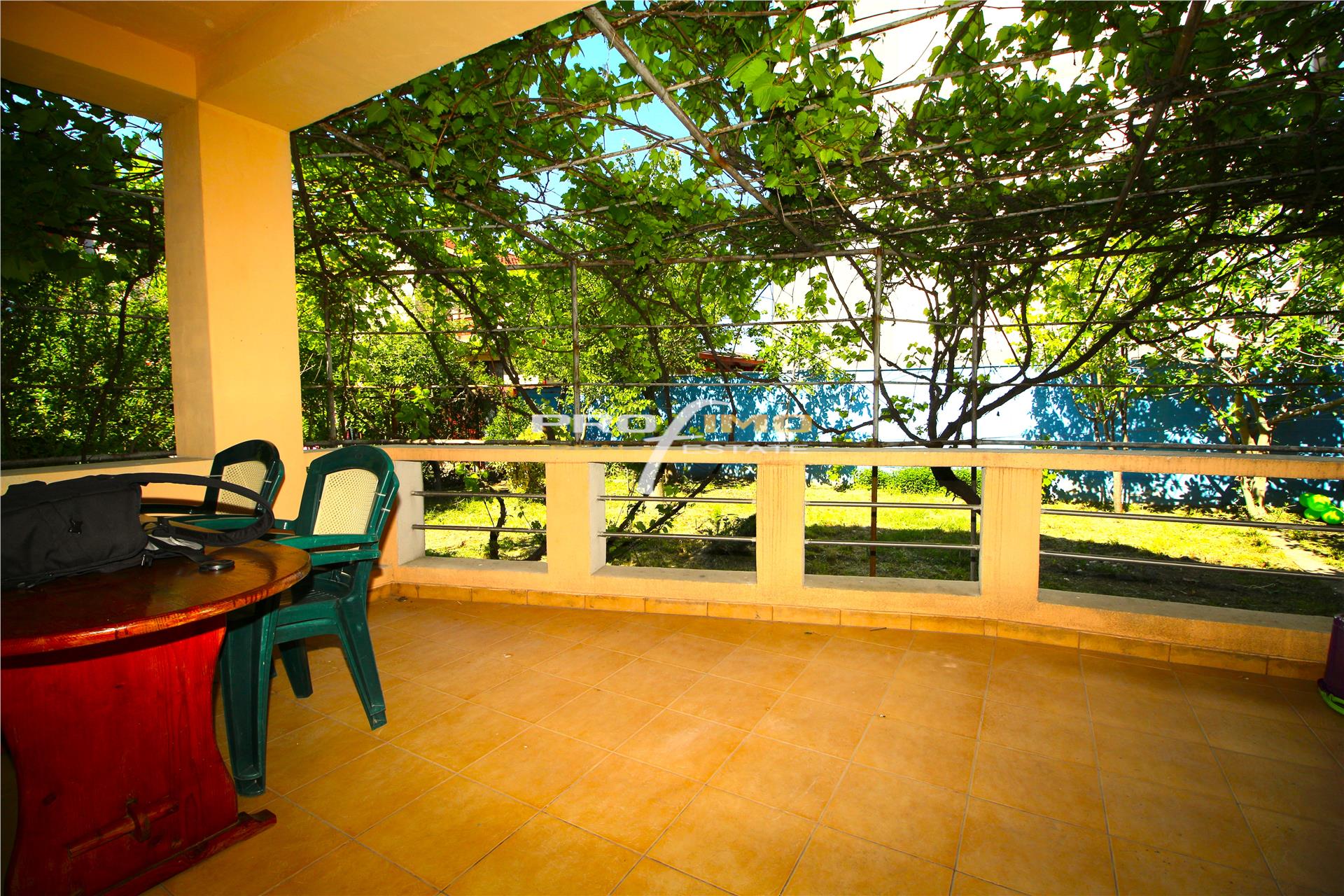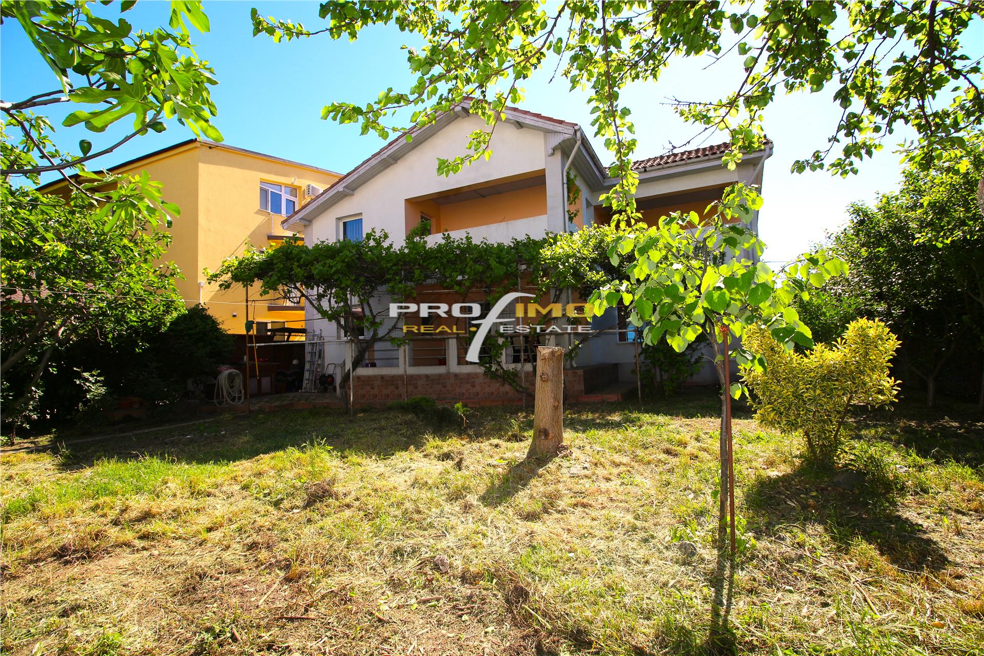Curtea din spate are vegetatie matura cu pomi fructiferi, meri si smochini, si o bolta de struguri ce umbreste terasa. Curtea din fata este impartita in spatiu de parcare si spatiu verde cu copaci de tei inalti ce protejeza casa atat de viscol cat si de soarele arzator din vara.